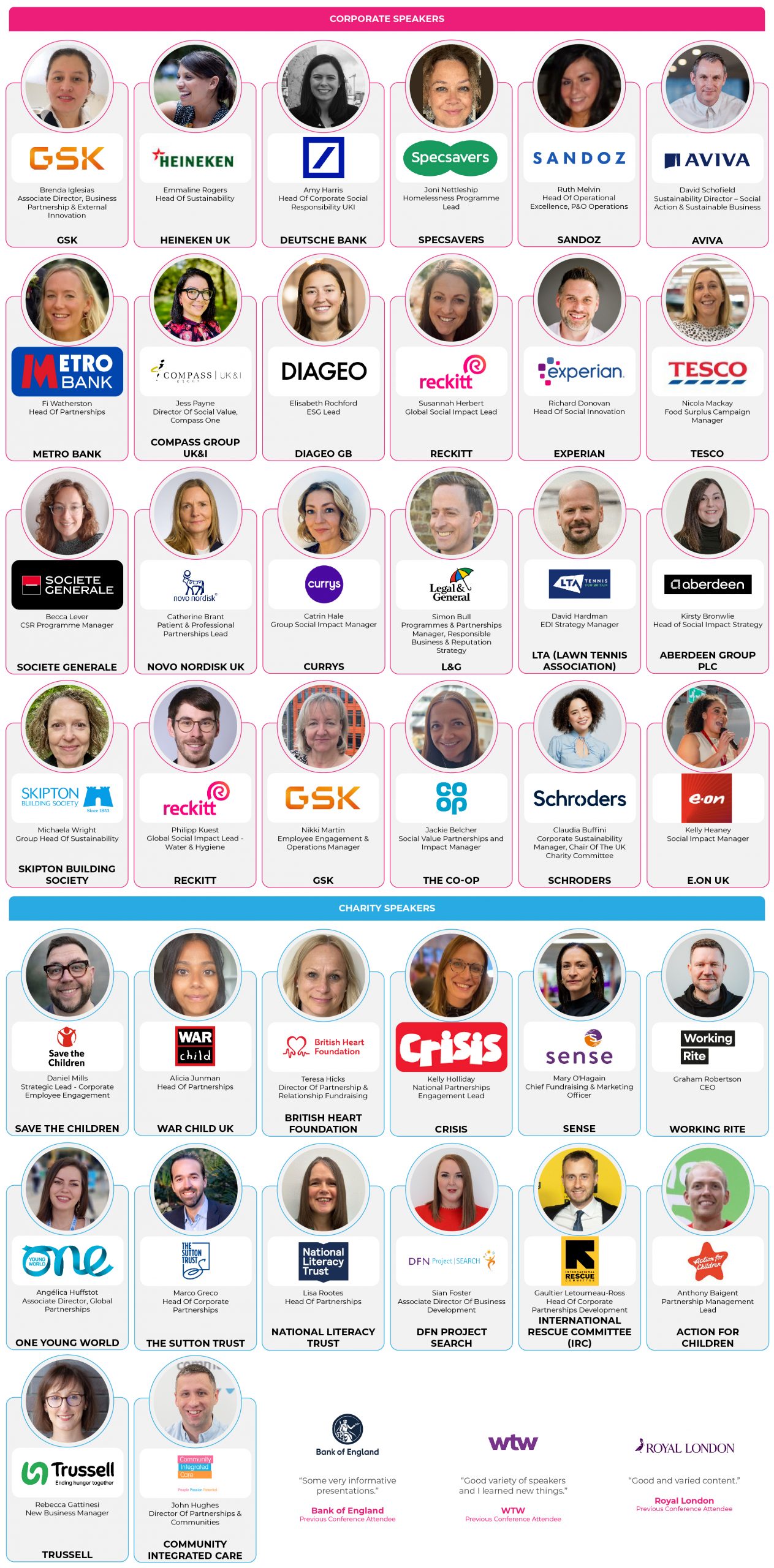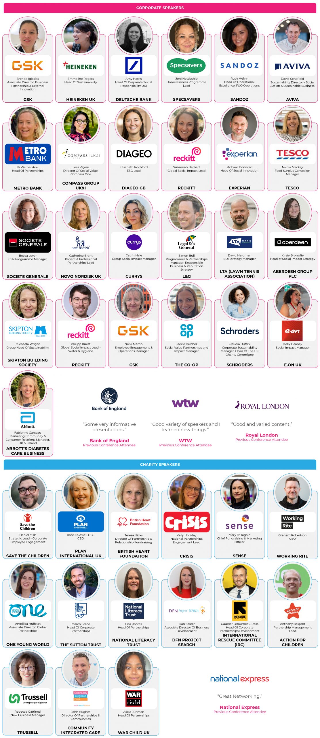 - Valuable Connections Across Corporates & Charities: Build relationships with peers, partners, and decision-makers facing the same challenges and opportunities